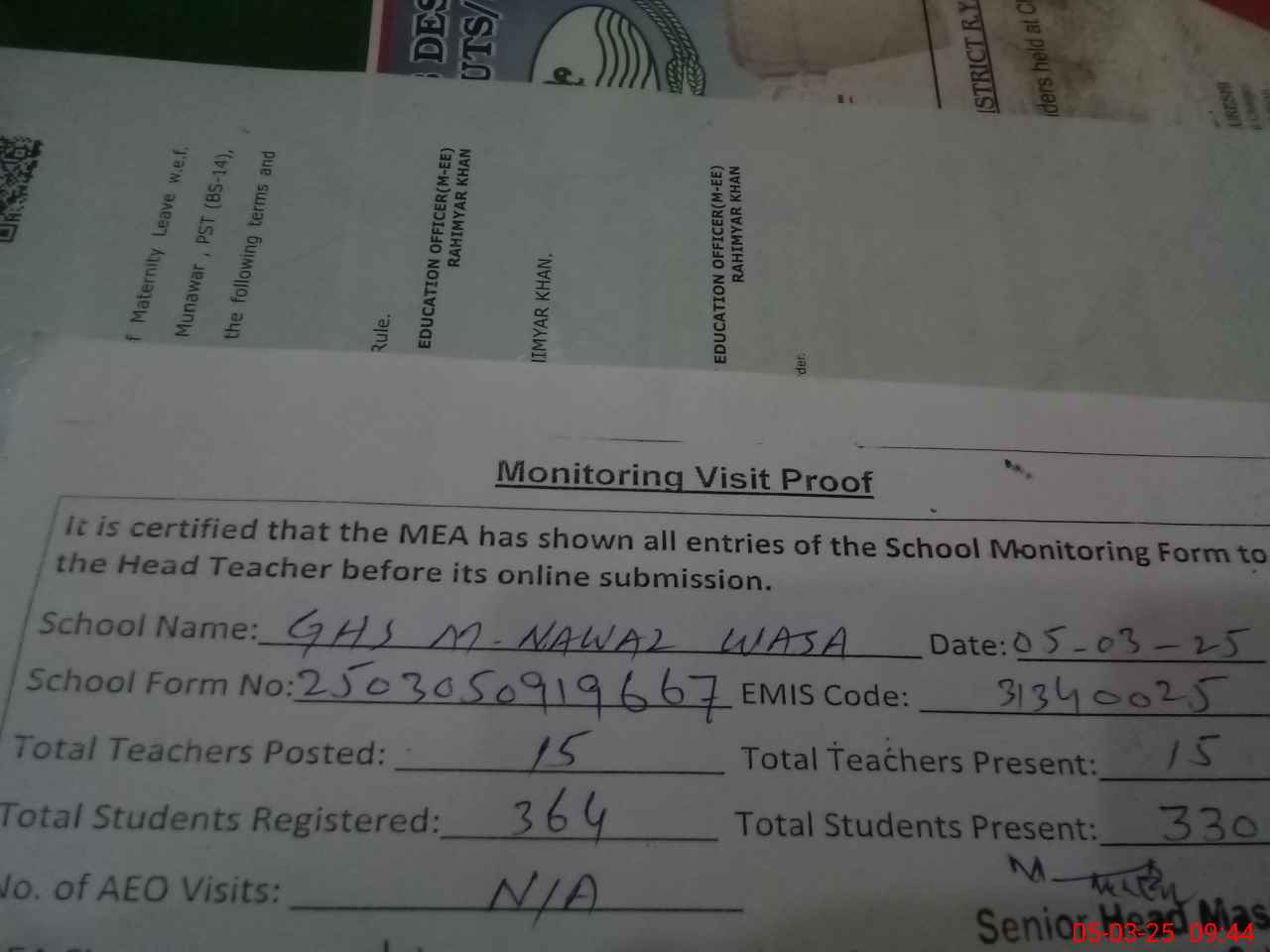 | Certified that this School was Inspected by the Undersigned MEA/DMO Today and the Information Stated Above is as Per Record. | |||||