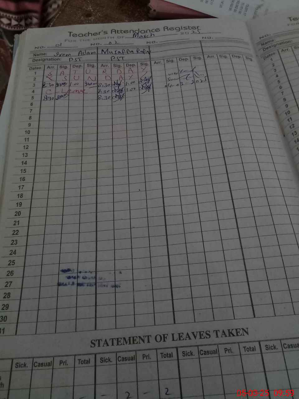 | Name: IR**** AS**** Designation: (School Headmaster's/Headmistress's) PST Phone/Cell Number: 03**** |