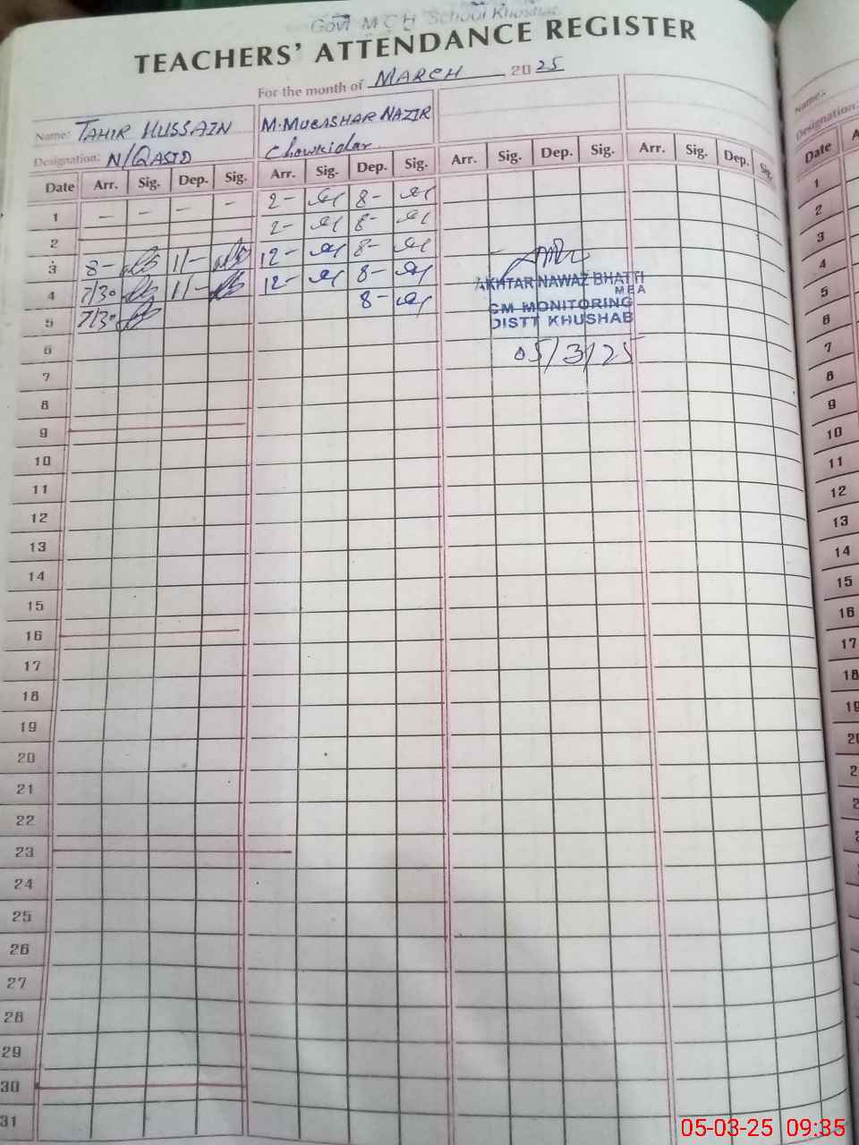 | Name: Mu**** Ar**** Designation: (School Headmaster's/Headmistress's) H / M Phone/Cell Number: 03**** |
