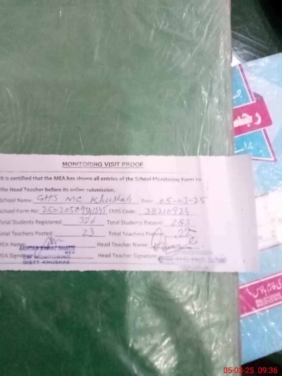| EMIS Code: 38210924 | Name of School: GHS MC KHUSHAB | |||