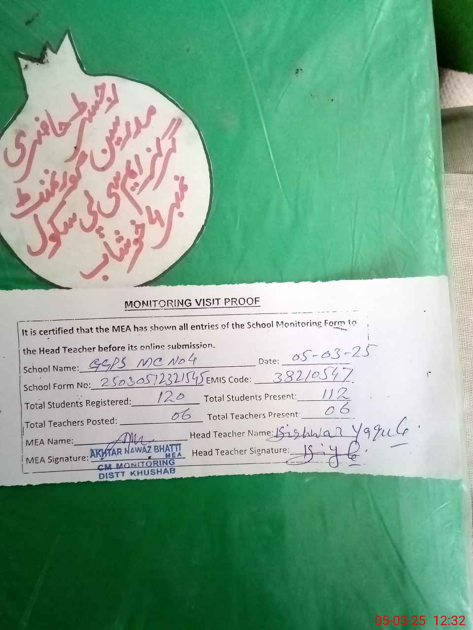 | EMIS Code: 38210547 | Name of School: GGPS MC NO. 4 KHUSHAB | |||