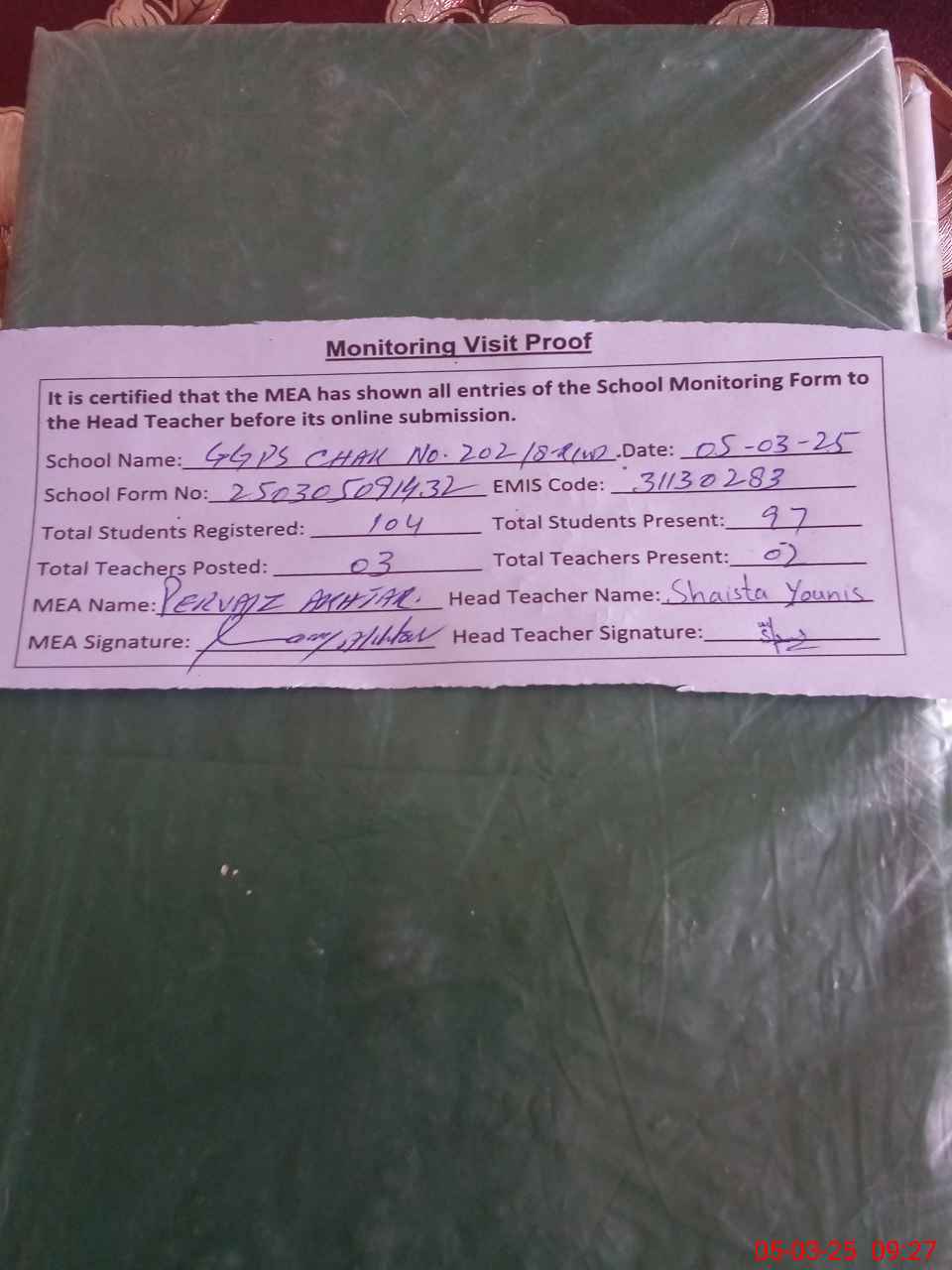 | EMIS Code: 31130283 | Name of School: GGPS CHAK NO 202/8-R WEST | |||