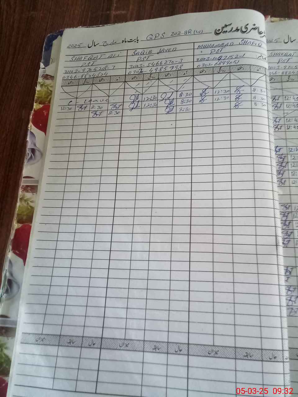 | CNIC | Full Name | Designation | R/C | Absence during last cal. month |