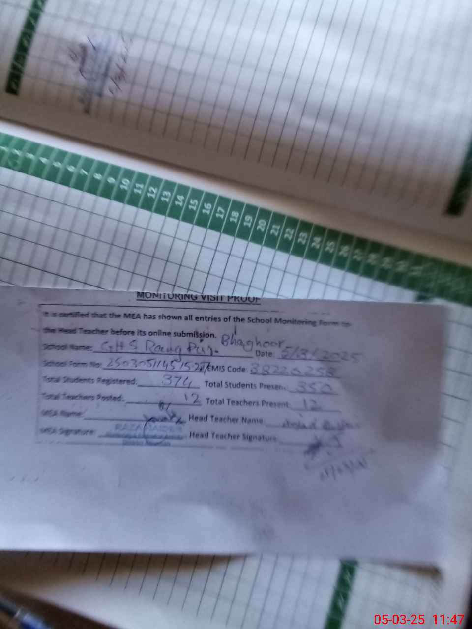 | EMIS Code: 38220258 | Name of School: GHS RANGPUR BAGHOOR | |||