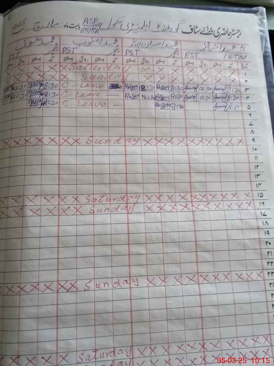 | 31**** | Mu**** Ya**** | PST | Regular | 2 | 0 | 0 | 0 | 0 | 0 | 0 | 0 | 2 | Casual |