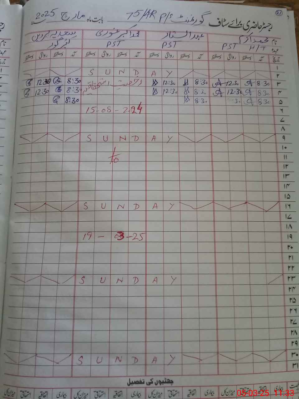 | 31**** | Mu**** Ak**** Gh**** | PST | Regular | 28 | 0 | 0 | 0 | 0 | 0 | 0 | 28 | 0 | Earned |