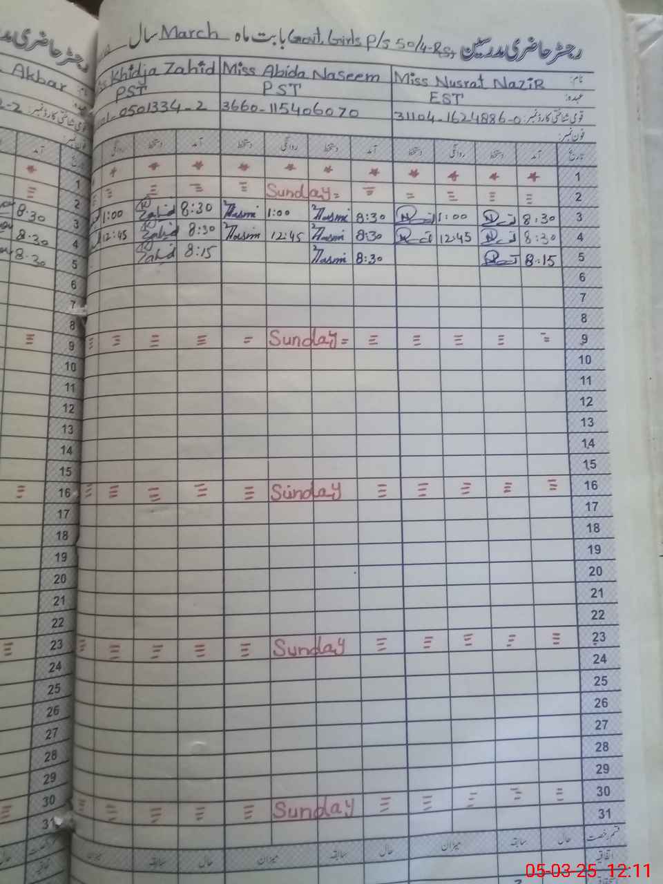 | Name: NU**** NA**** Designation: (School Headmaster's/Headmistress's) EST Phone/Cell Number: 03**** |