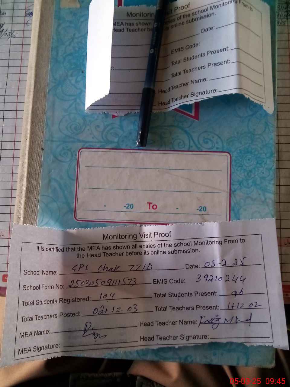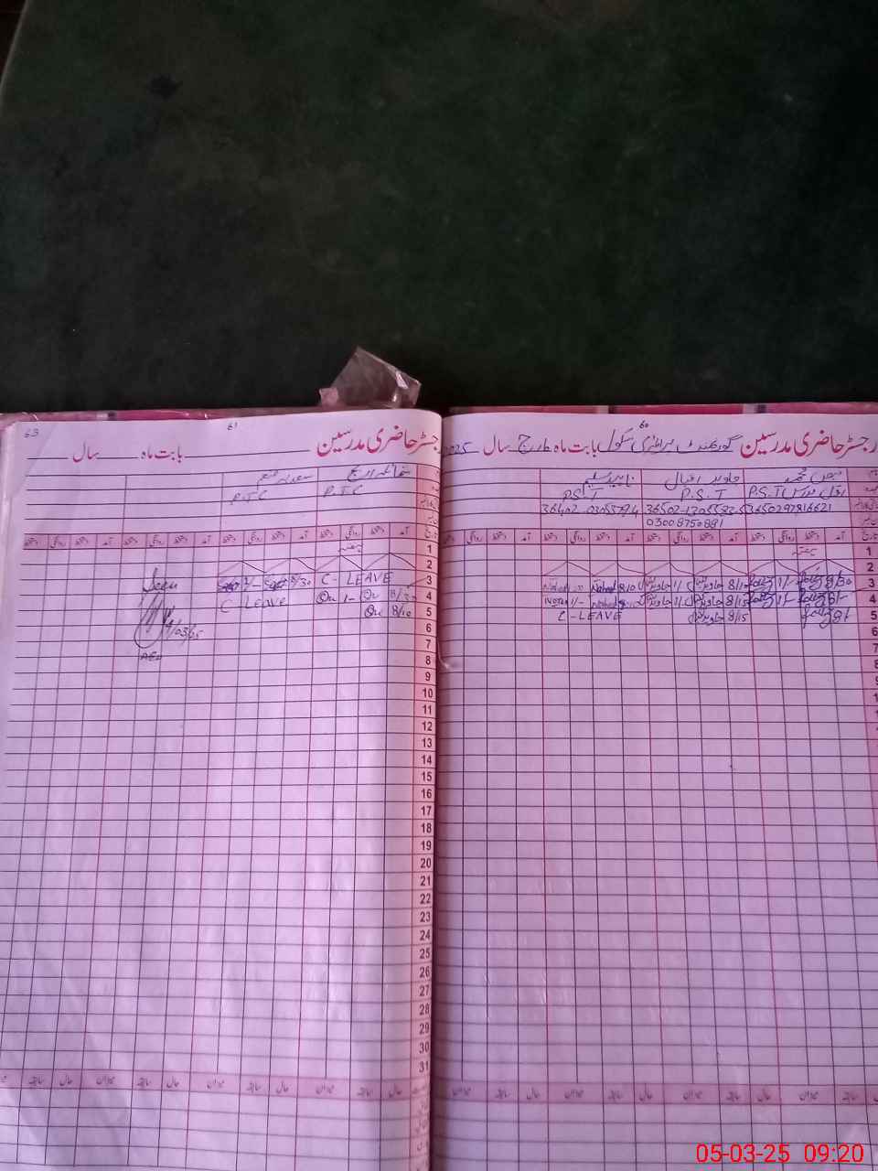 | Remarks (Use Separate Page if Required): No Fan in Two Class rooms and electric Water Pump theft on 4 March 2025 No record of FTF No Free books | |||||
