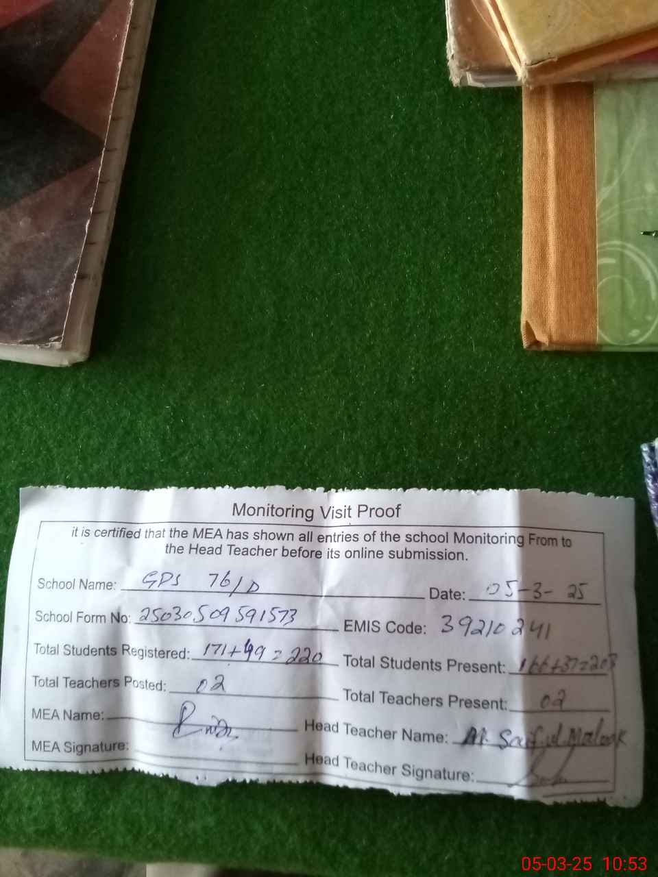 | EMIS Code: 39210241 | Name of School: GPS CHAK NO. 76/D | |||