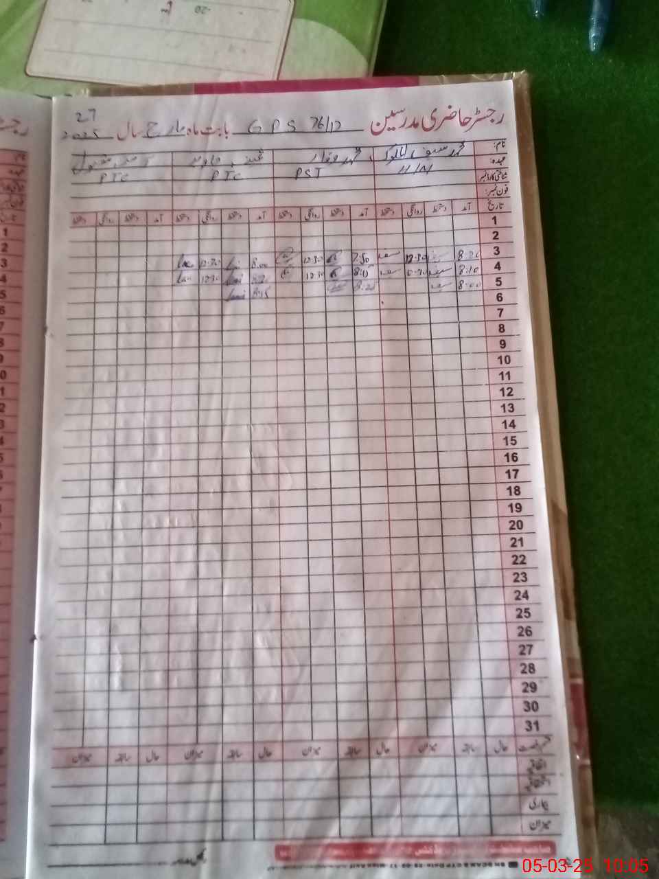 | Name: Mu**** Sa**** UlMa**** Designation: (School Headmaster's/Headmistress's) PST Phone/Cell Number: 03**** |