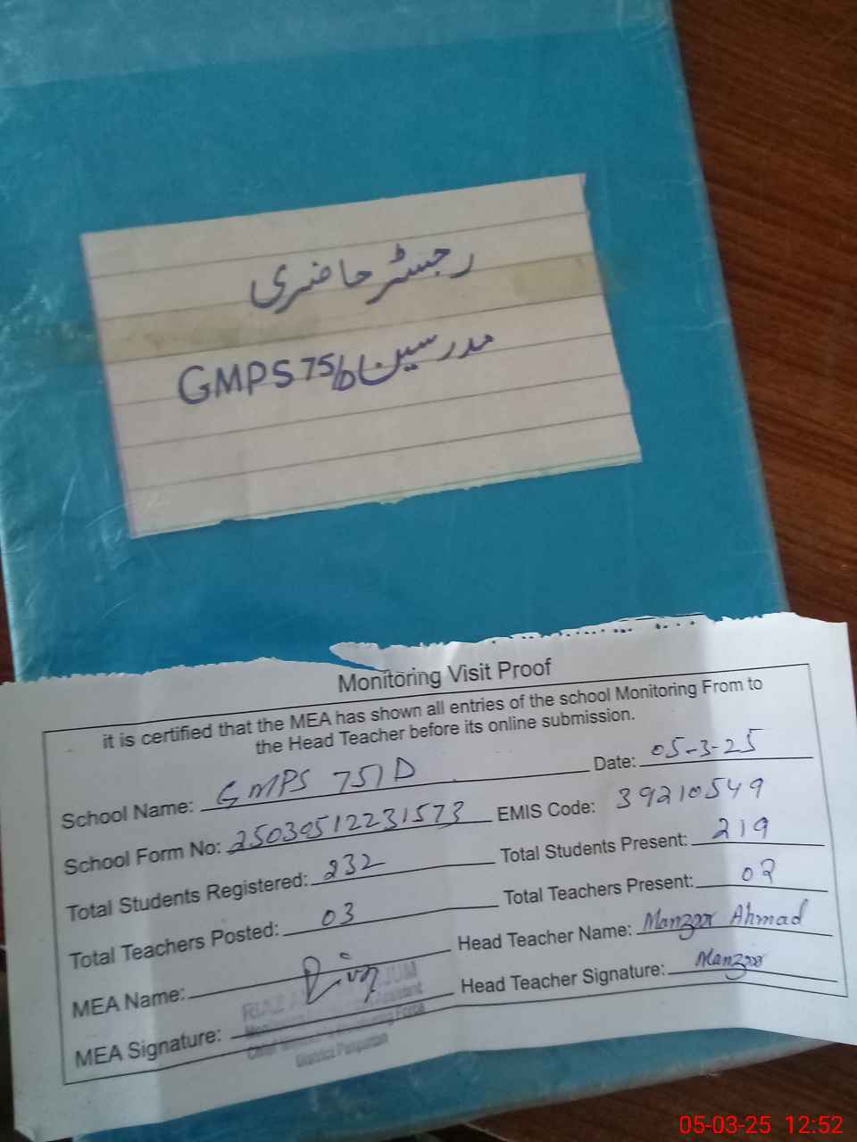 | EMIS Code: 39210549 | Name of School: GMPS 75/D | |||