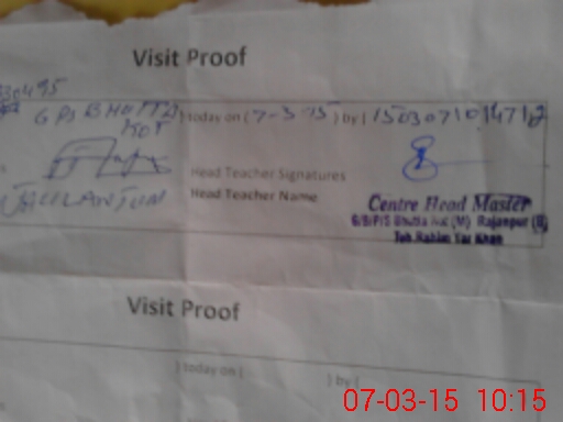 | Attendance Register | Head Teacher | MEA with School | Visit Proof |