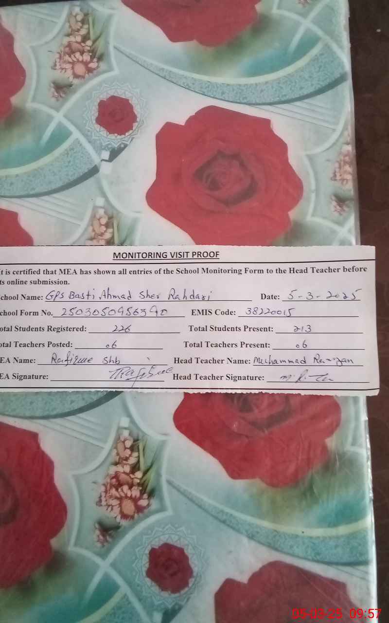 | EMIS Code: 38220015 | Name of School: GPS BASTI AHMED SHER RAHDARI | |||