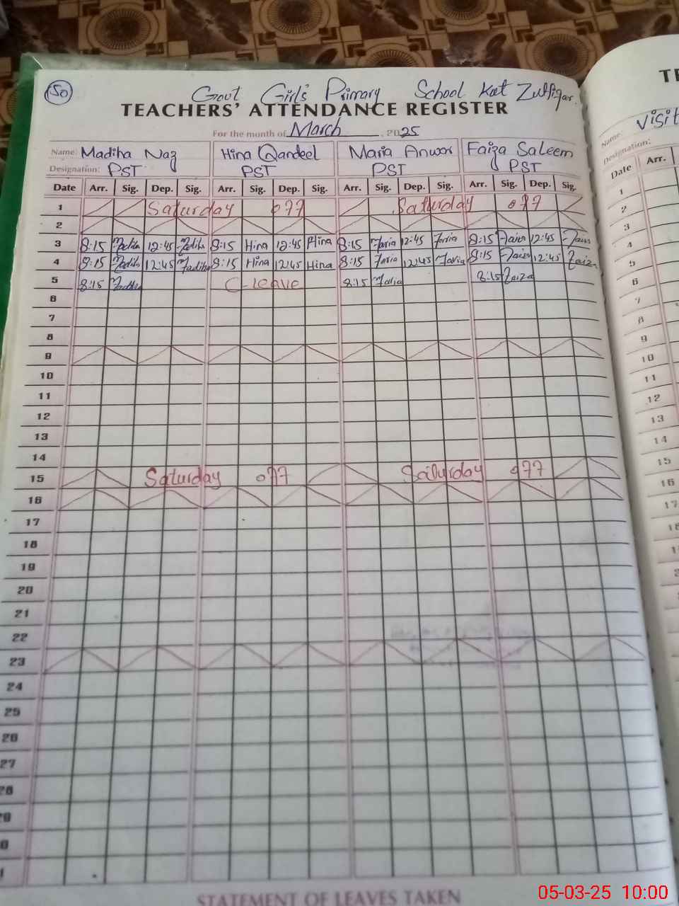 | Leave | Duty | Absent | Maternity | Medical | Ex- Pak |