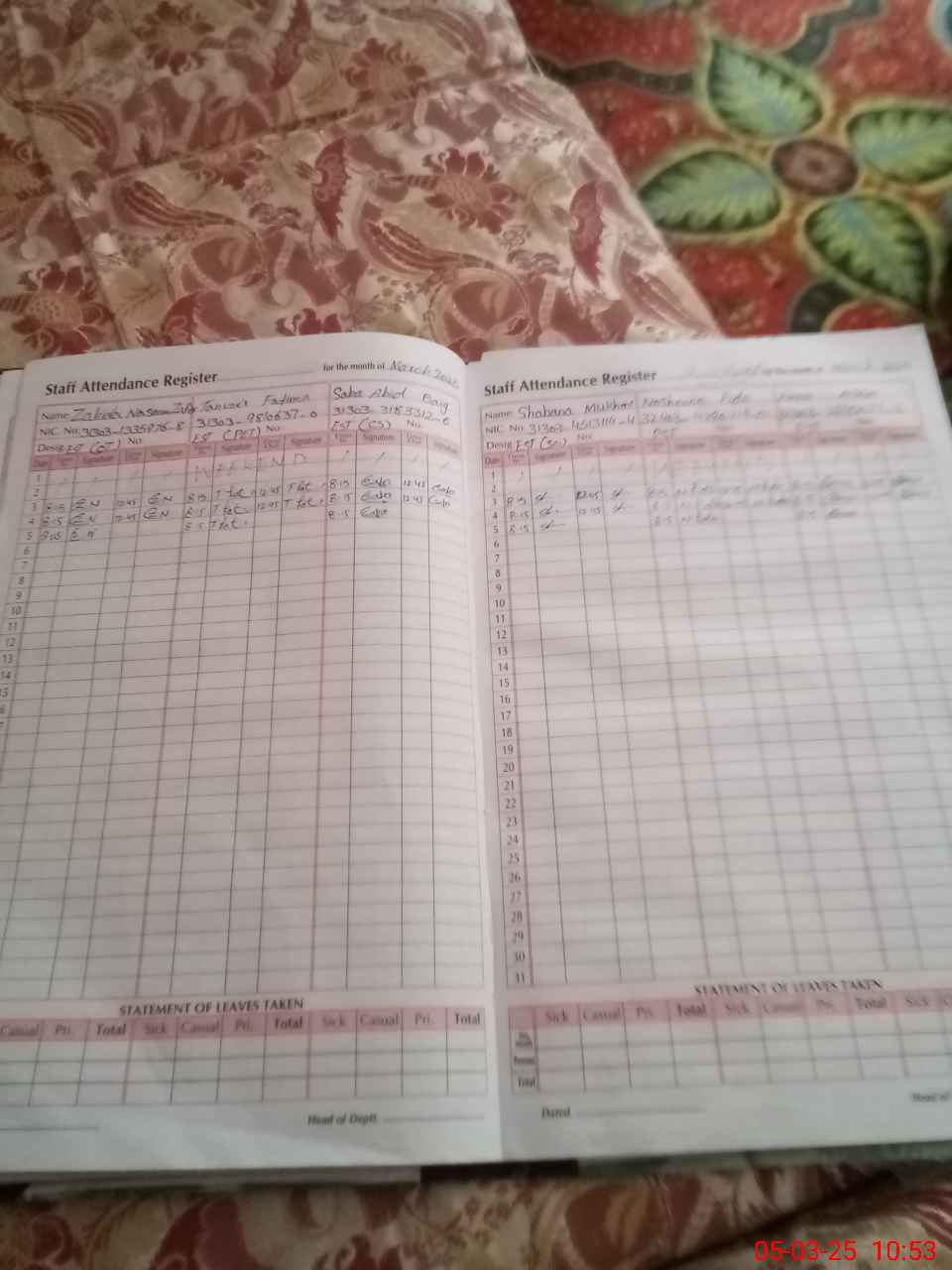 | CNIC | Full Name | Designation | R/C | Absence During Last Calender Month |