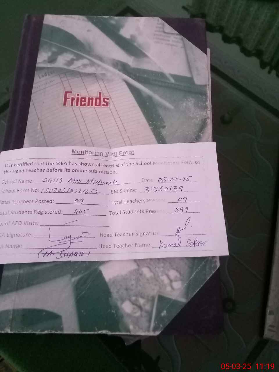| Attendance Register | Head Teacher | MEA with School | Visit Proof |
