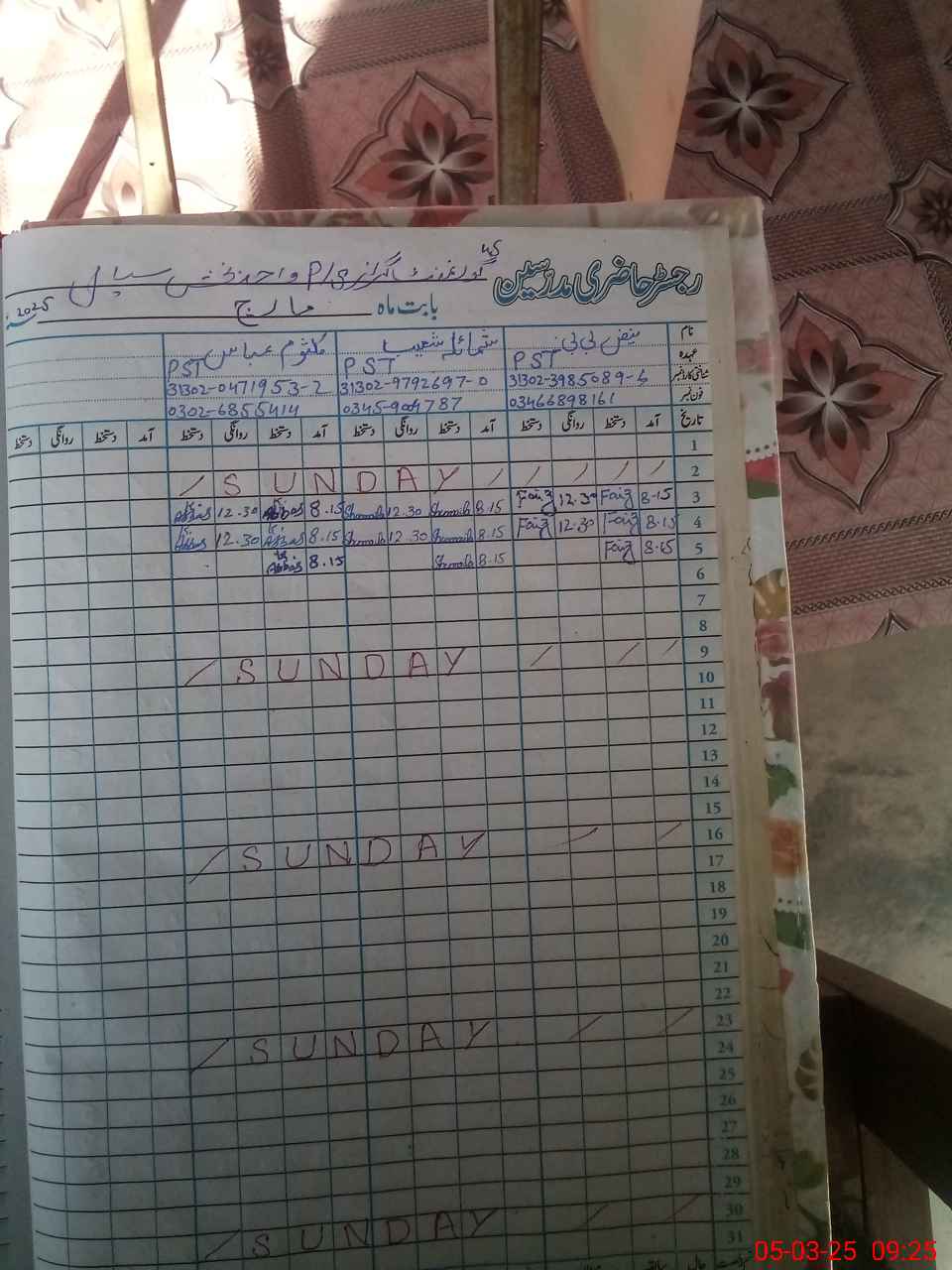 | Name: FA**** Bi**** Designation: (School Headmaster's/Headmistress's) PST Phone/Cell Number: 03**** |