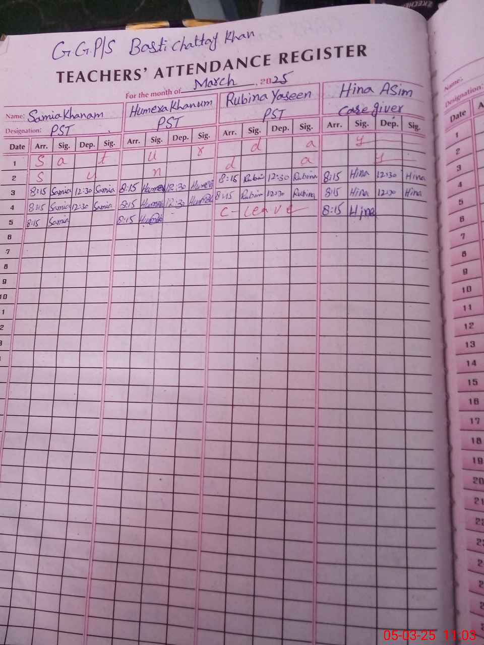 | Name: SA**** KH**** Designation: (School Headmaster's/Headmistress's) PST Phone/Cell Number: 03**** |