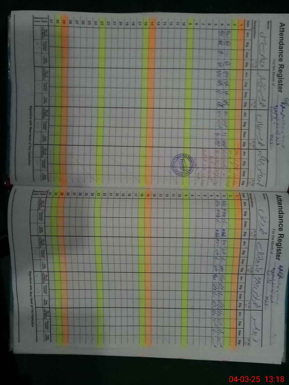 | 35**** | Al**** Ra**** La**** | 6 | 2 | 0 | 0 | 0 | 0 | 0 | 0 | 0 | 0 | 0 | Exam Duty |