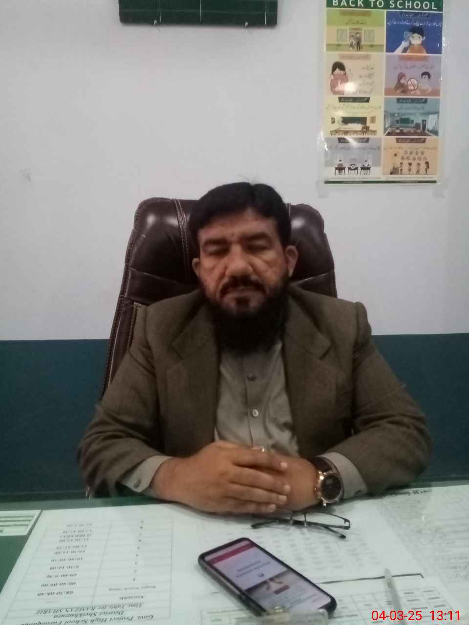 | Name: KA**** HU**** SH**** Designation: (School Headmaster's/Headmistress's) SST General Phone/Cell Number: 03**** |