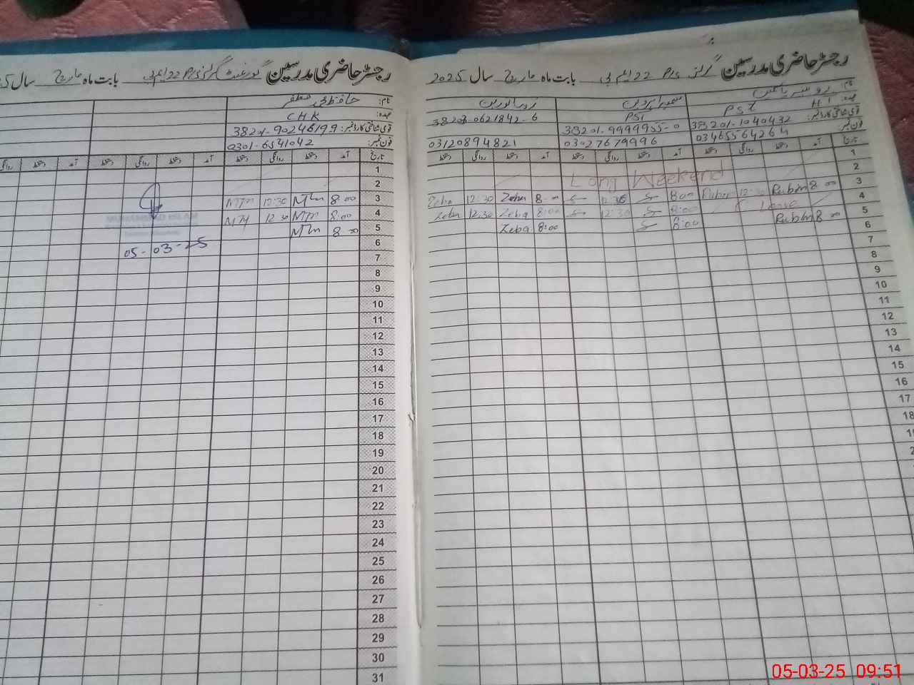 | CNIC | Full Name | Designation | R/C | Absence During Last Calender Month |