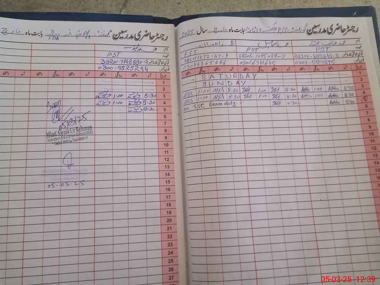 | Name: Mu**** Aq**** Mu**** Designation: (School Headmaster's/Headmistress's) PST Phone/Cell Number: 03**** |