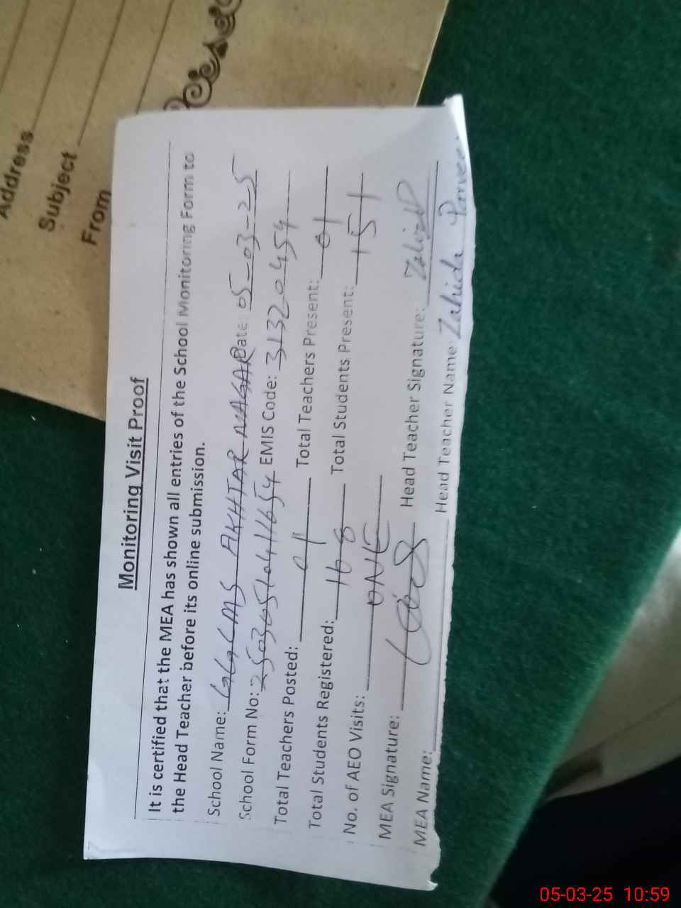 | EMIS Code: 31320454 | Name of School: GGCMS AKHTAR NAGAR | |||