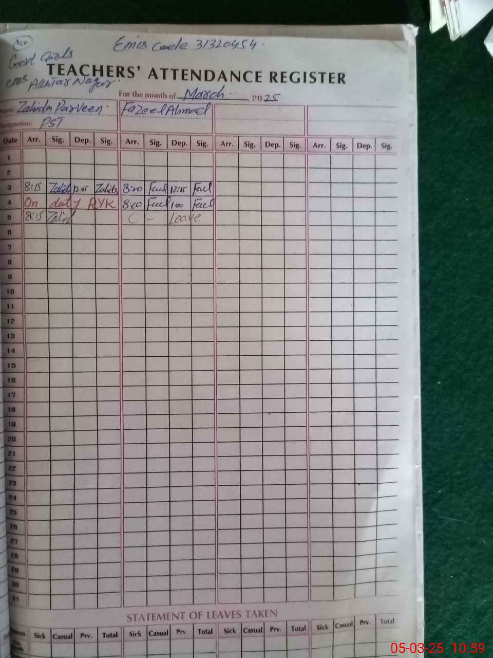 | Name: Za**** Pe**** Designation: (School Headmaster's/Headmistress's) PST Phone/Cell Number: 03**** |