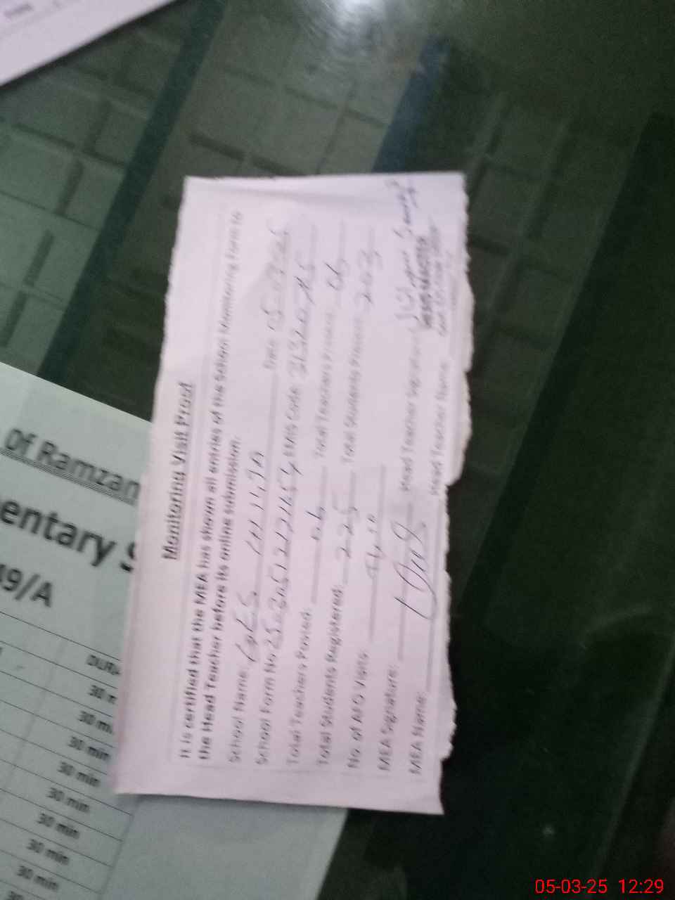 | Monitoring Date: 05-03-2025 | Start Time: 05-03-2025 12:18 PM | End Time: 05-03-2025 12:29 PM | Name of MEA: Kh**** Ah**** | |