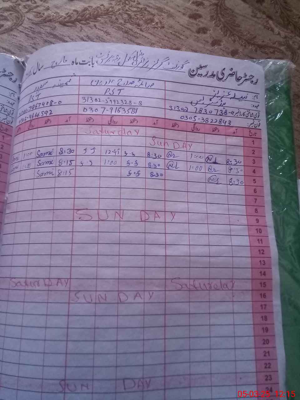| Name: NA**** AZ**** Designation: (School Headmaster's/Headmistress's) PST/PTC/JV Phone/Cell Number: 03**** |