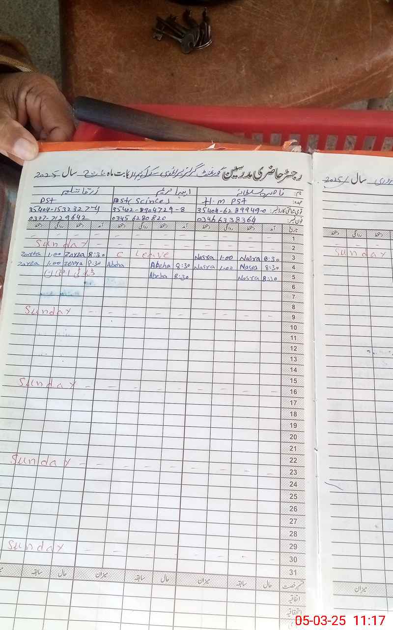 | Name: Na**** Su**** Designation: (School Headmaster's/Headmistress's) PST Phone/Cell Number: 03**** |