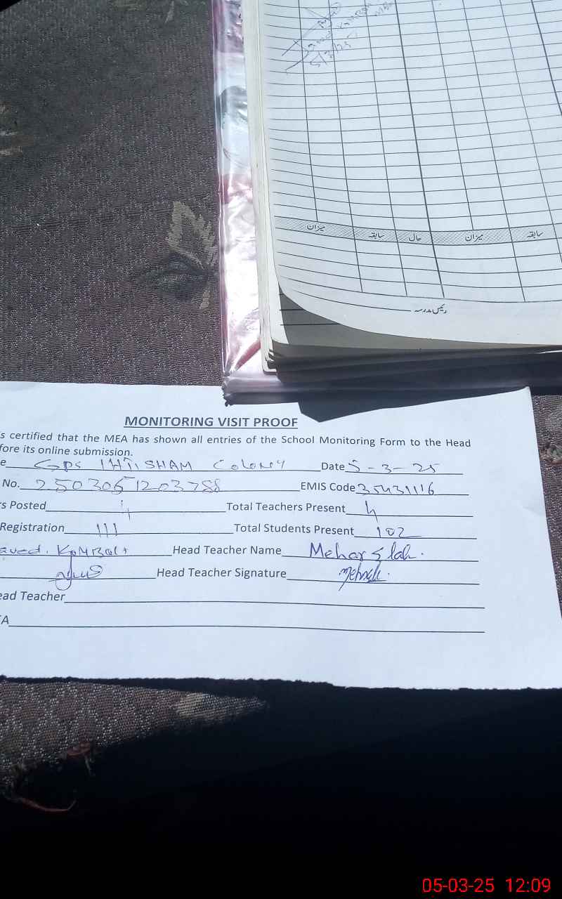 | EMIS Code: 35431116 | Name of School: GPS IHTISHAM COLONY MANANWALA | |||