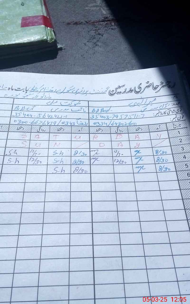 | Name: CHME**** EL**** Designation: (School Headmaster's/Headmistress's) PST Phone/Cell Number: 03**** |