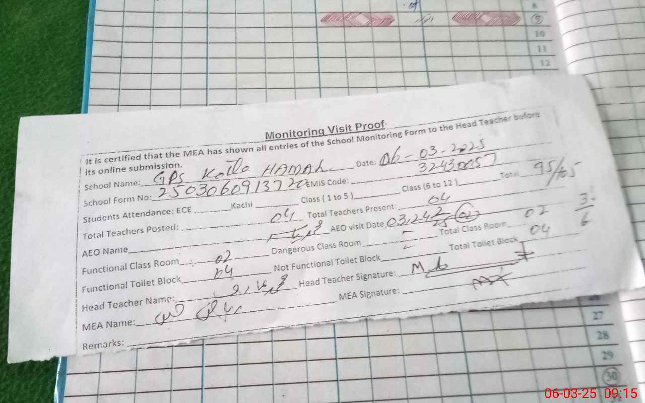 | EMIS Code: 32430057 | Name of School: GPS KOTLA HAMAL | |||