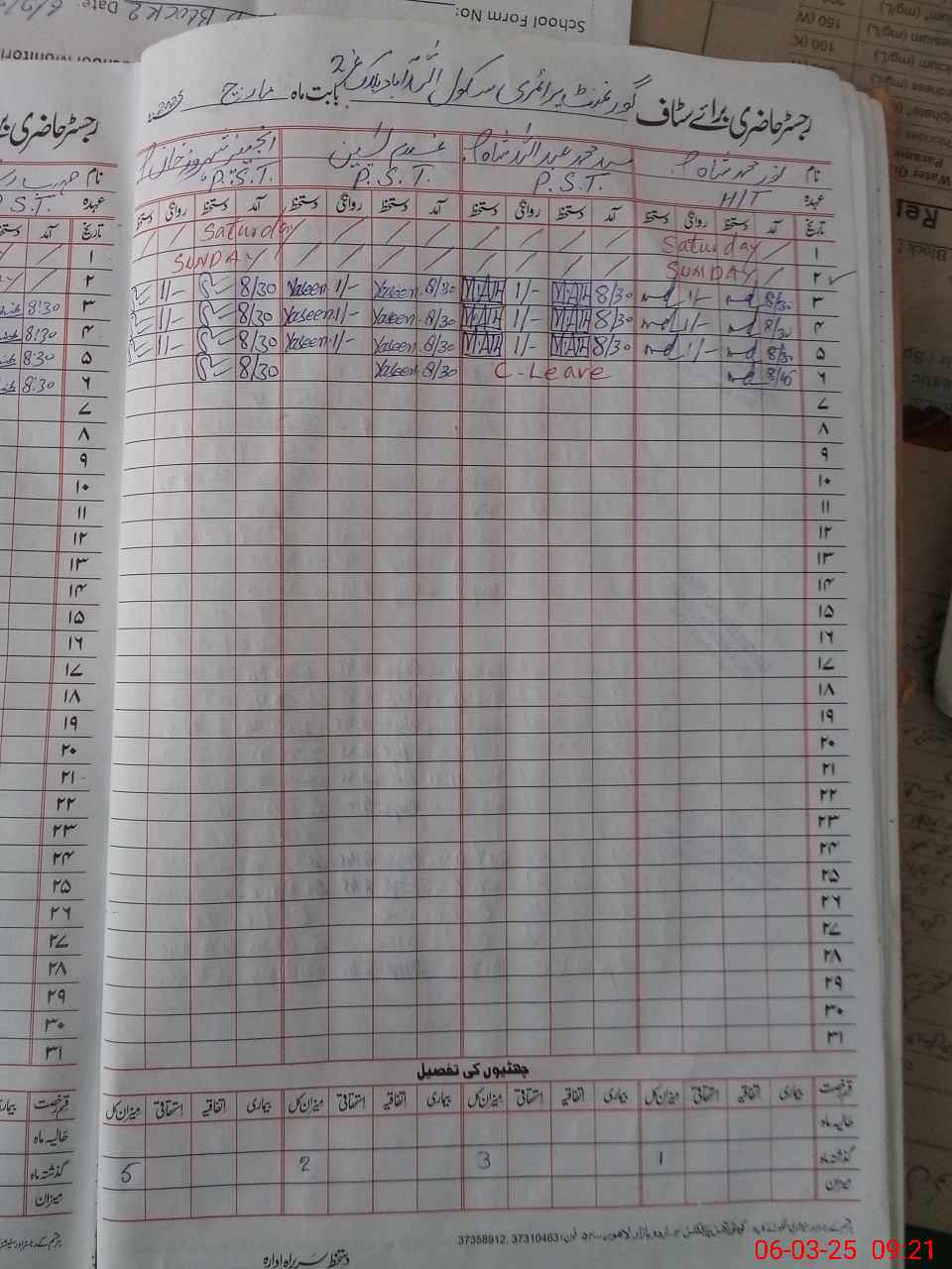 | Name: No**** Mu**** Sh**** Designation: (School Headmaster's/Headmistress's) PST Phone/Cell Number: 03**** |