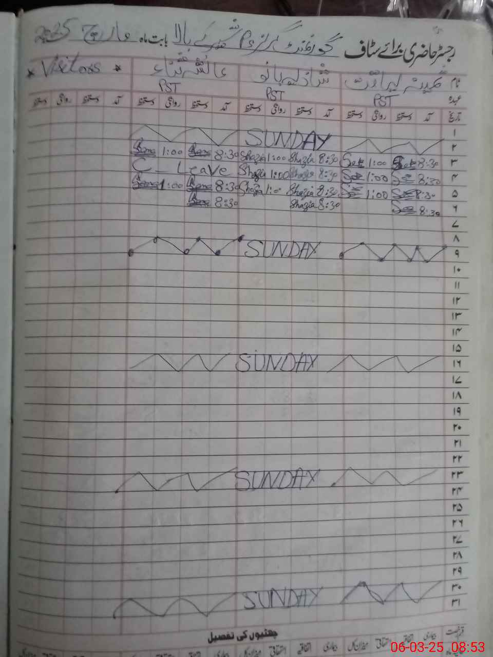 | CNIC | Full Name | Designation | R/C | Absence During Last Calender Month |