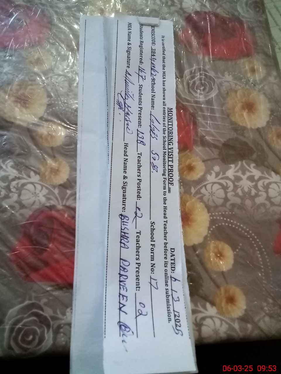 | Certified that this School was Inspected by the Undersigned MEA/DMO Today and the Information Stated Above is as Per Record. | |||||