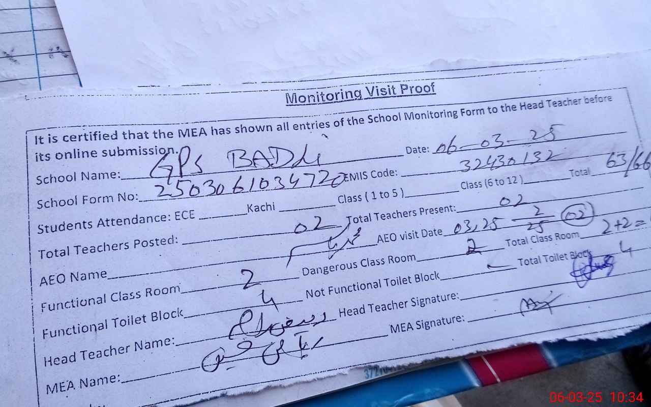 | EMIS Code: 32430132 | Name of School: GPS BADLI | |||
