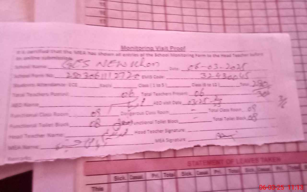 | Attendance Register | Head Teacher | MEA with School | Visit Proof |