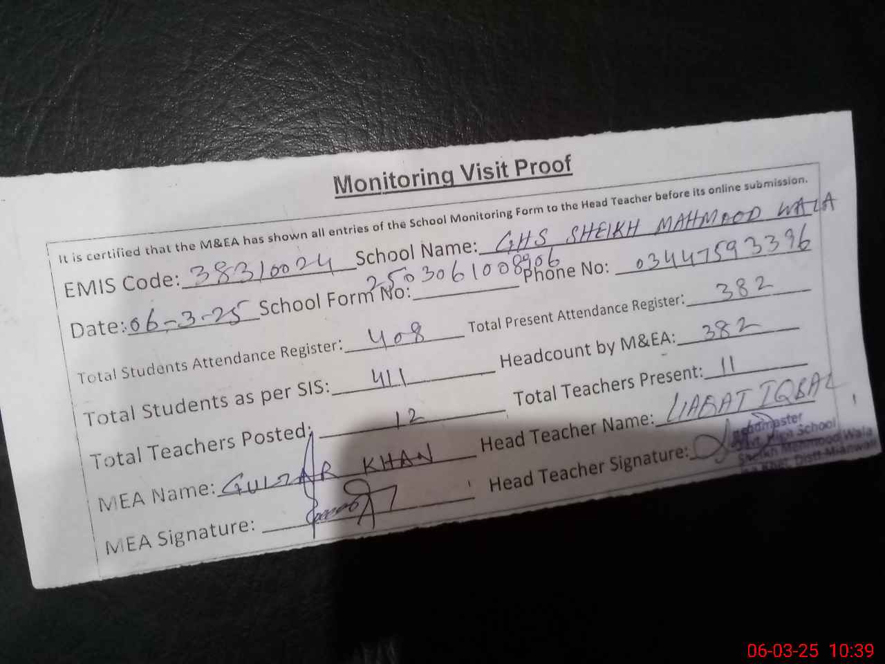 | EMIS Code: 38310024 | Name of School: GHS SHEIKH MEHMOOD WALA | |||