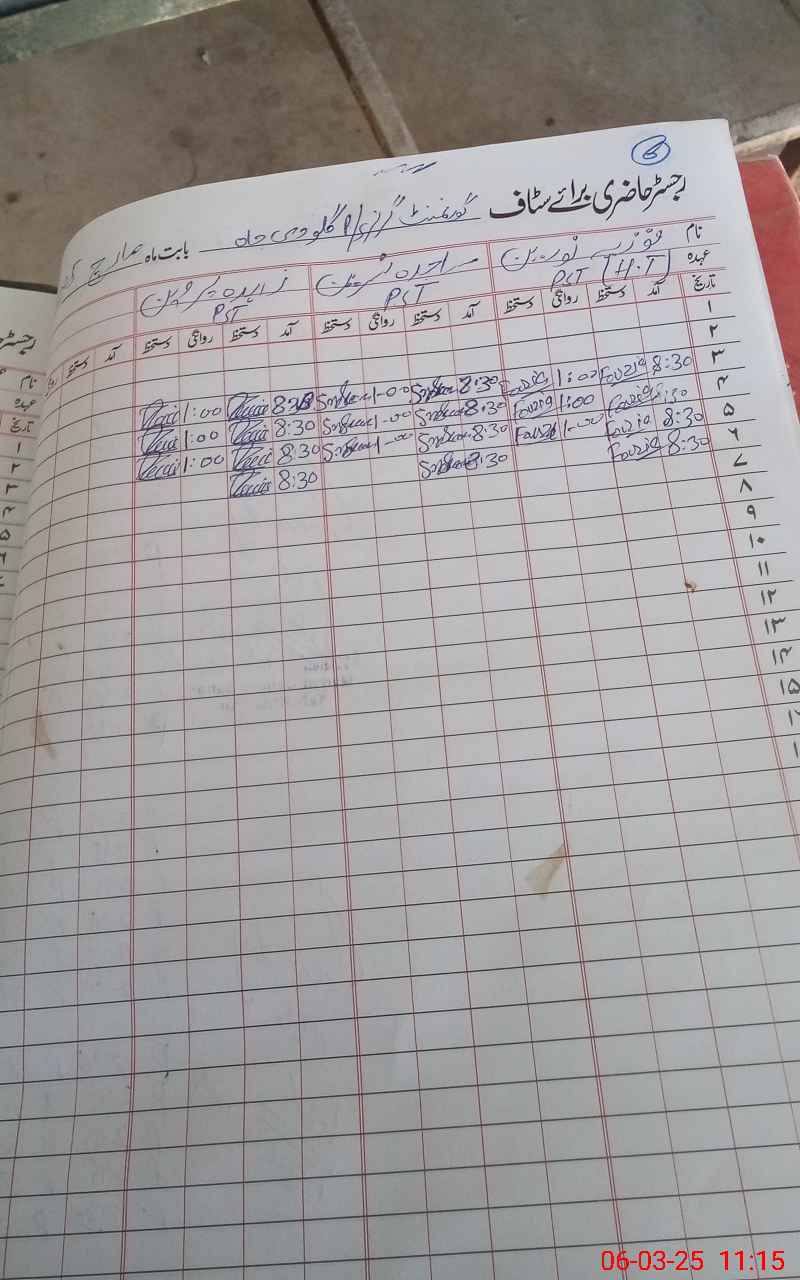 | CNIC | Full Name | Designation | R/C | Absence During Last Calender Month |