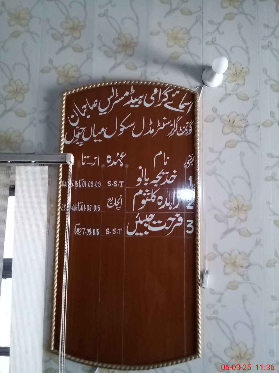 | Name: FA**** JA**** Designation: (School Headmaster's/Headmistress's) SST ( GENERAL) Phone/Cell Number: 03**** |