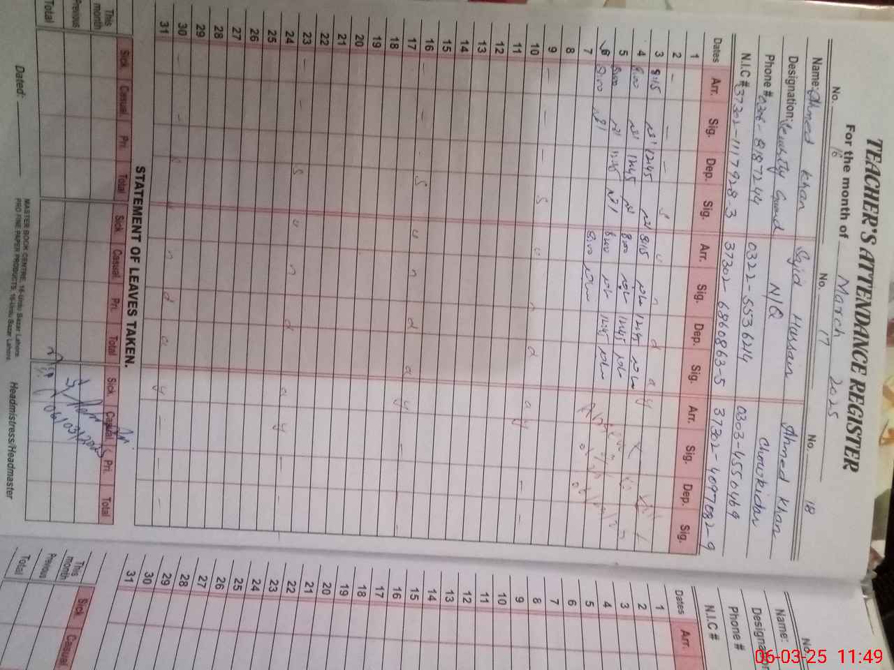 | Name: YA**** Designation: (School Headmaster's/Headmistress's) S.S.T.(Arts) Phone/Cell Number: 03**** |