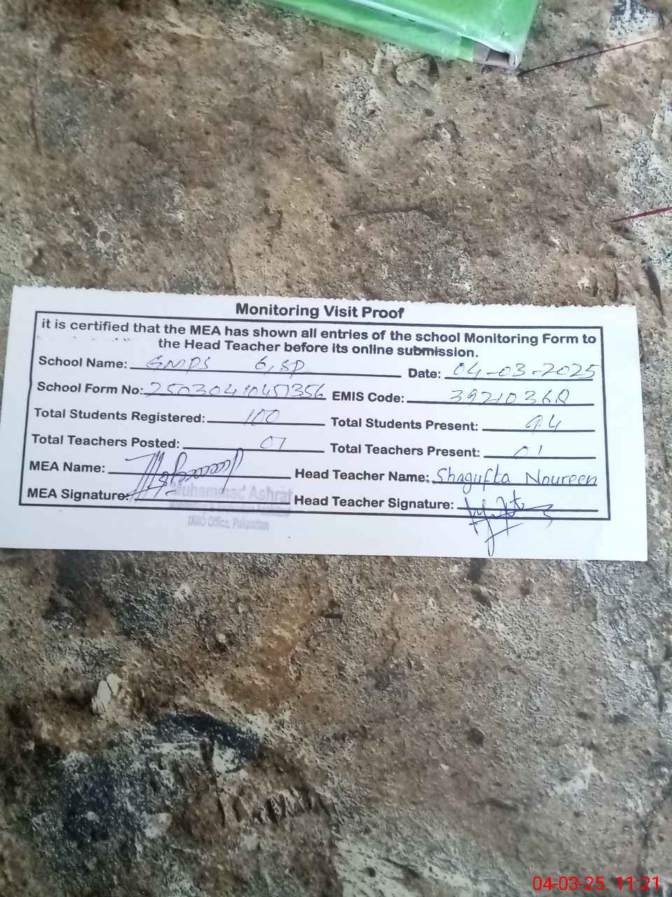 | EMIS Code: 39210368 | Name of School: GMPS 6/SP | |||