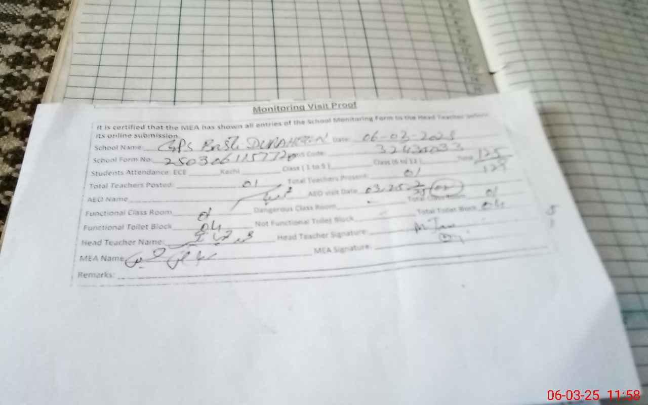 | EMIS Code: 32430033 | Name of School: GPS BASTI DURAHEN | |||