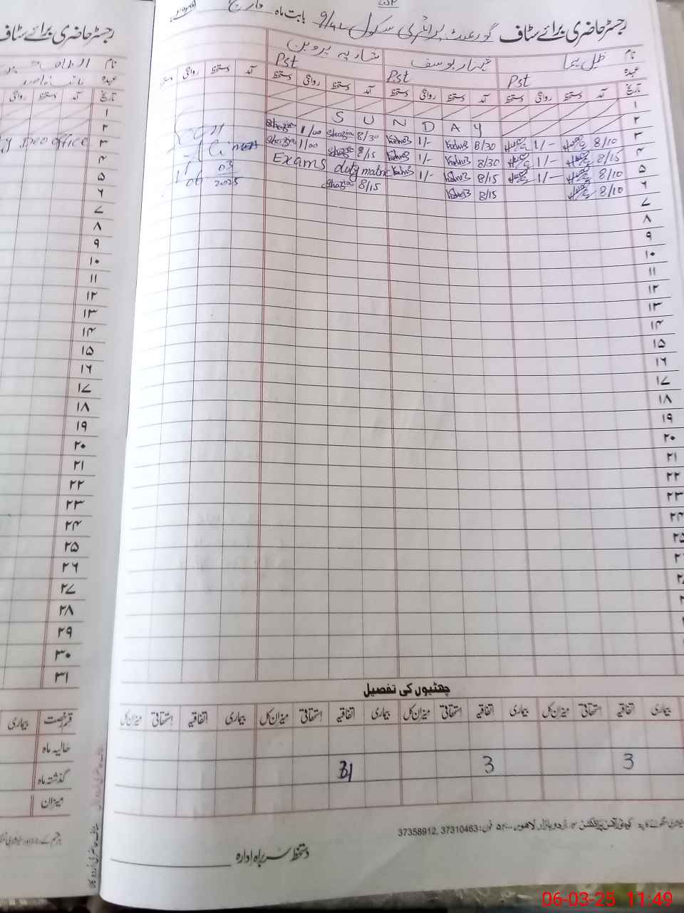 | CNIC | Full Name | Designation | R/C | Absence During Last Calender Month |