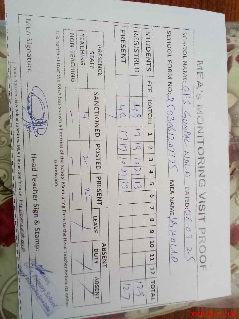 | EMIS Code: 36410250 | Name of School: GPS GUNPAL WALA, MOUZA HAVELI MUBARAK SHAH, SARAI SIDHU | |||