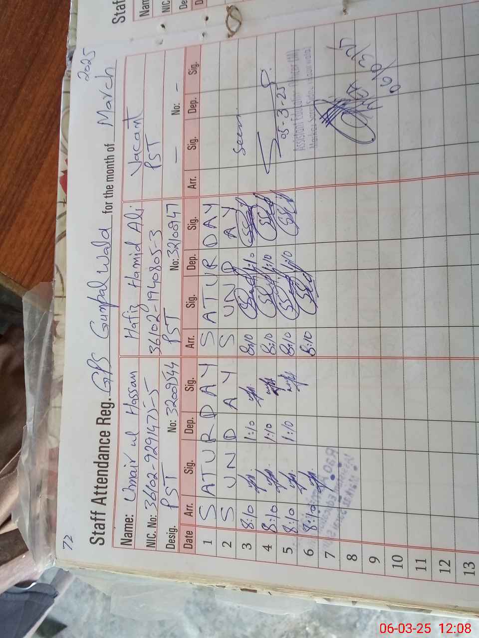 | Name: Um**** UlHa**** Designation: (School Headmaster's/Headmistress's) Pst Ss Phone/Cell Number: 03**** |