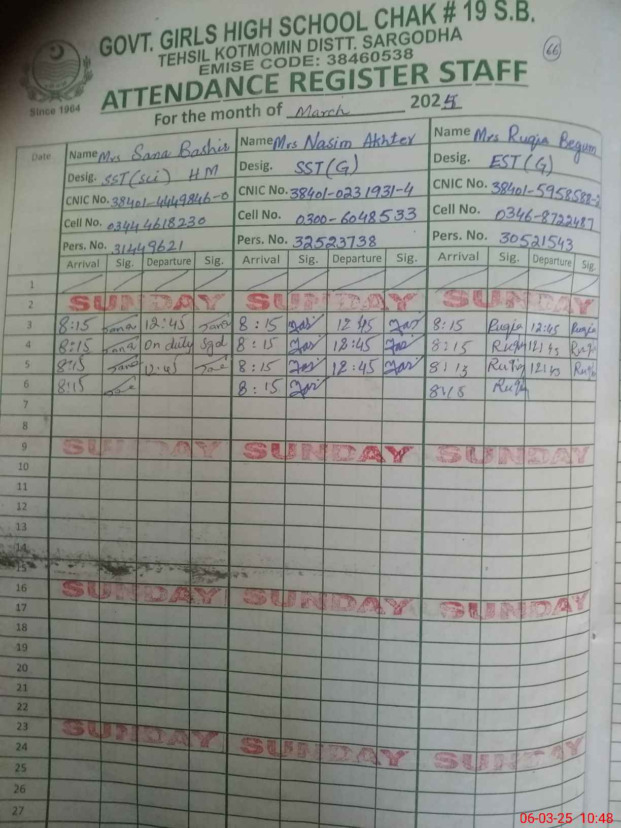 | Name: SA**** BA**** Designation: (School Headmaster's/Headmistress's) SST SCIENCE (HEADMISTRESS) Phone/Cell Number: 03**** |