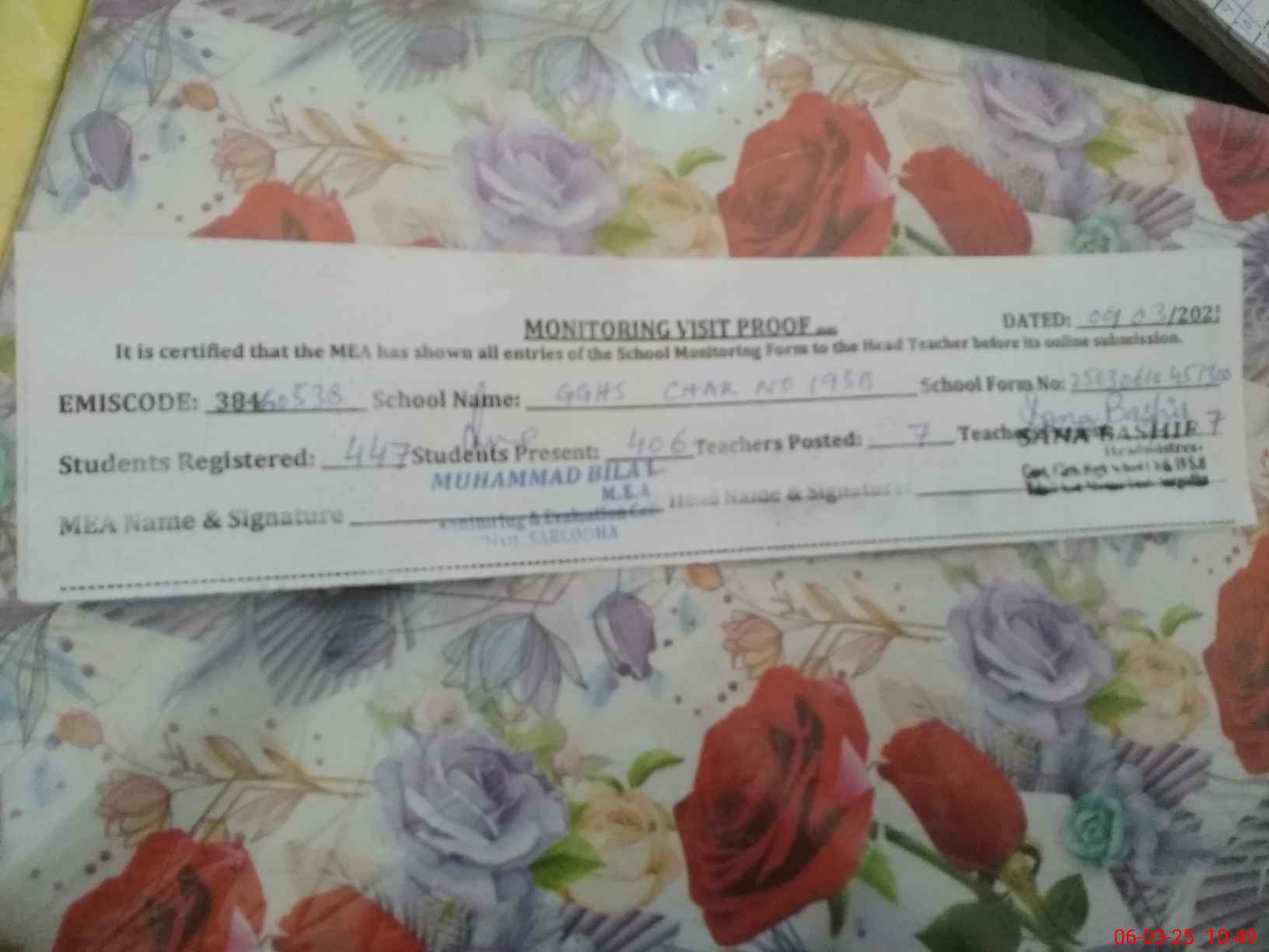 | EMIS Code: 38460538 | Name of School: GGHS CHAK NO.19 SB | |||